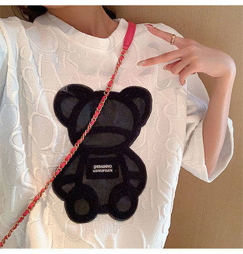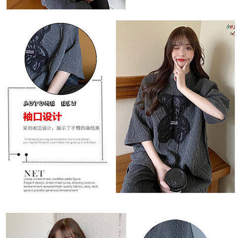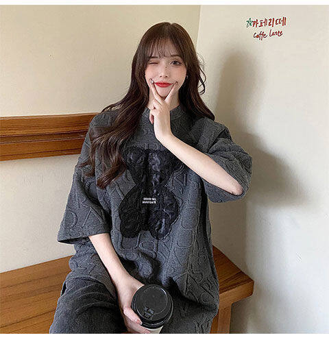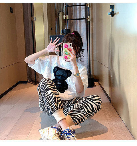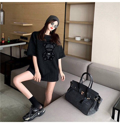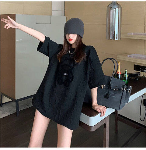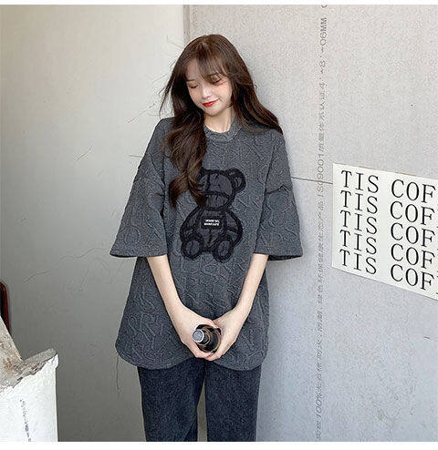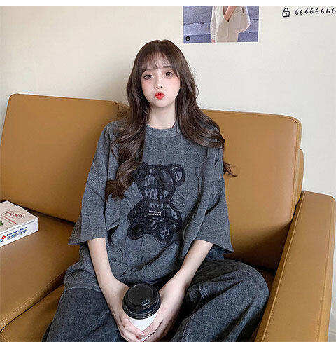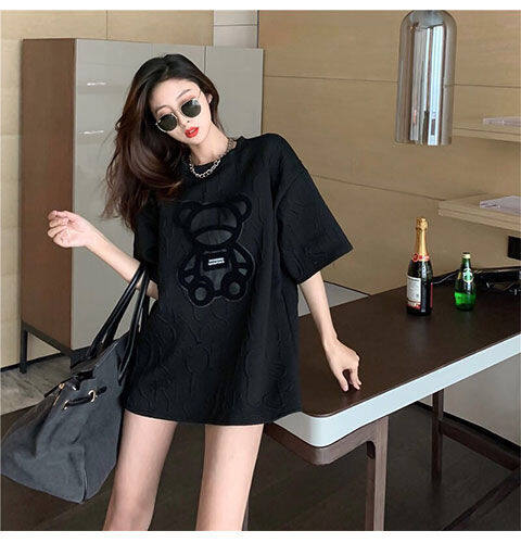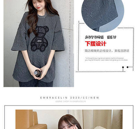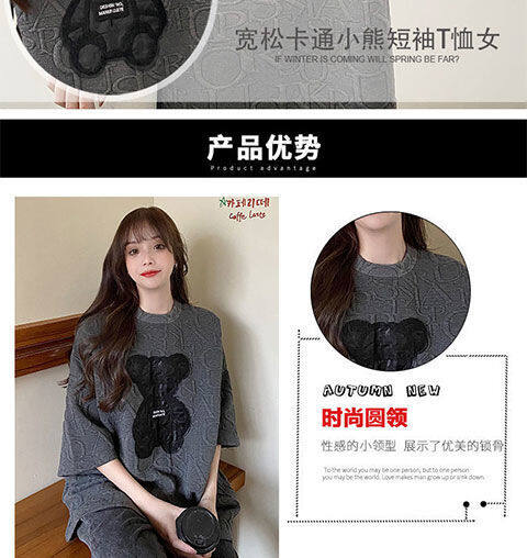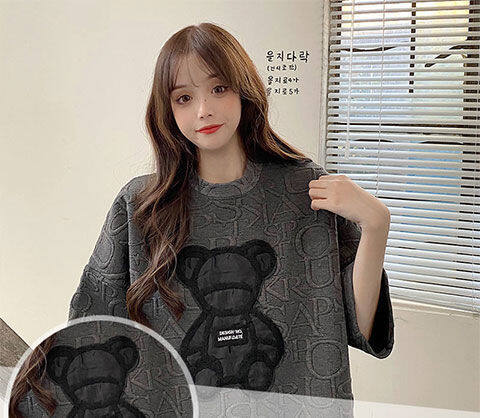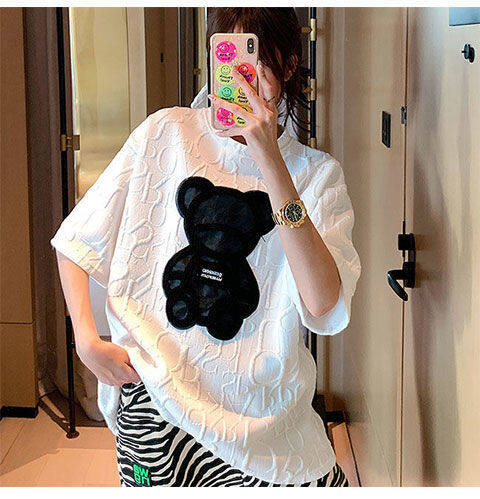 【40-80Kg】加大码女式T恤韩版BF熊刺绣短袖宽松全配休闲打底衬衫